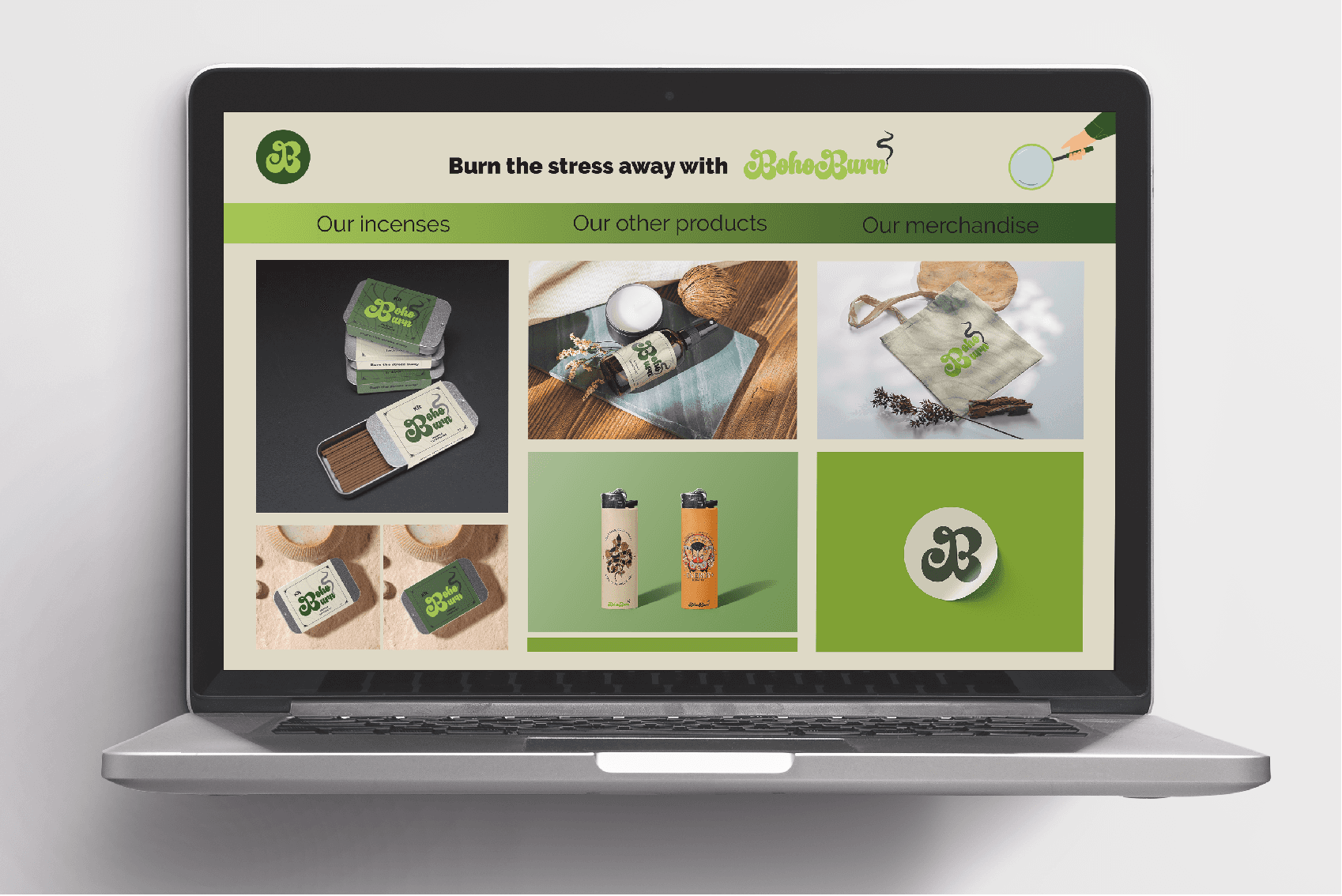 BohoBurn is a lifestyle fragrance brand that celebrates individuality, connection, and the beauty of nature. Rooted in the belief that scent has the power to evoke memories, inspire creativity, and nurture the soul, this project focused on creating a cohesive brand identity, packaging system, and website layout that translate emotion into a sensory and visual experience.